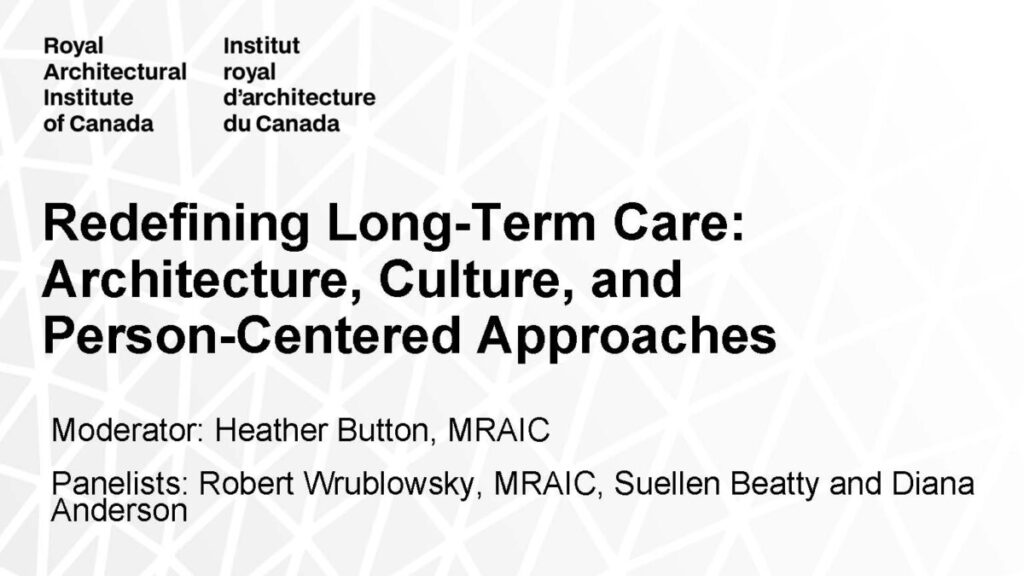 The RAIC Long Term Care Design Working Group presents Redefining Long-Term Care: Architecture, Culture, and Person-Centered Approaches.